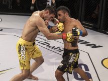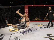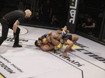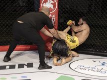 The referee had enough and separated them. After some striking exchanges, Anwar went for another takedown and once again he was sprawled down by Abzakh. “The Honey Badger” went to his back and put hooks in. After some punches and switching from hooks to triangle lock on the belly, Abzakh choked his opponent out.